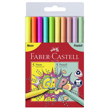 Colouring Pens Faber-Castell Pens (10) Colouring Pens Add to Cart View Cart Checkout Short Description: Product Description £ 6.99 Pack of 10 high quality fibre-tipped pens from Faber-Castell. Patented grip zone for a secure, non-slip grip. Ergonomic triangular shape.Washes out of most fabrics. Includes 5 neon & 5 pastel colours.