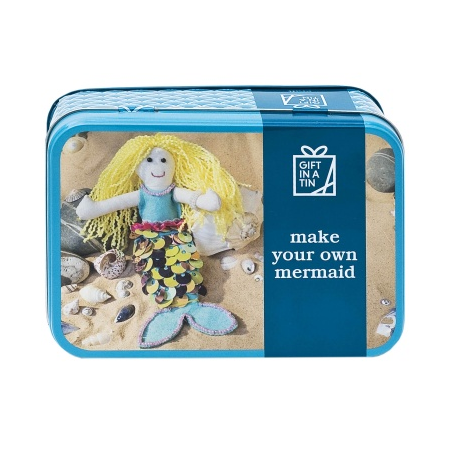 Gift In A Tin Mermaid Gift In A Tin Add to Cart View Cart Checkout Short Description: Product Description £ 9.99 (Out of Stock) A great craft kit to make a pretty mermaid with golden locks and shimmering scales! Transform a soft bodied doll into a dazzling mermaid with sequinned tail, using the craft materials and instructions provided.